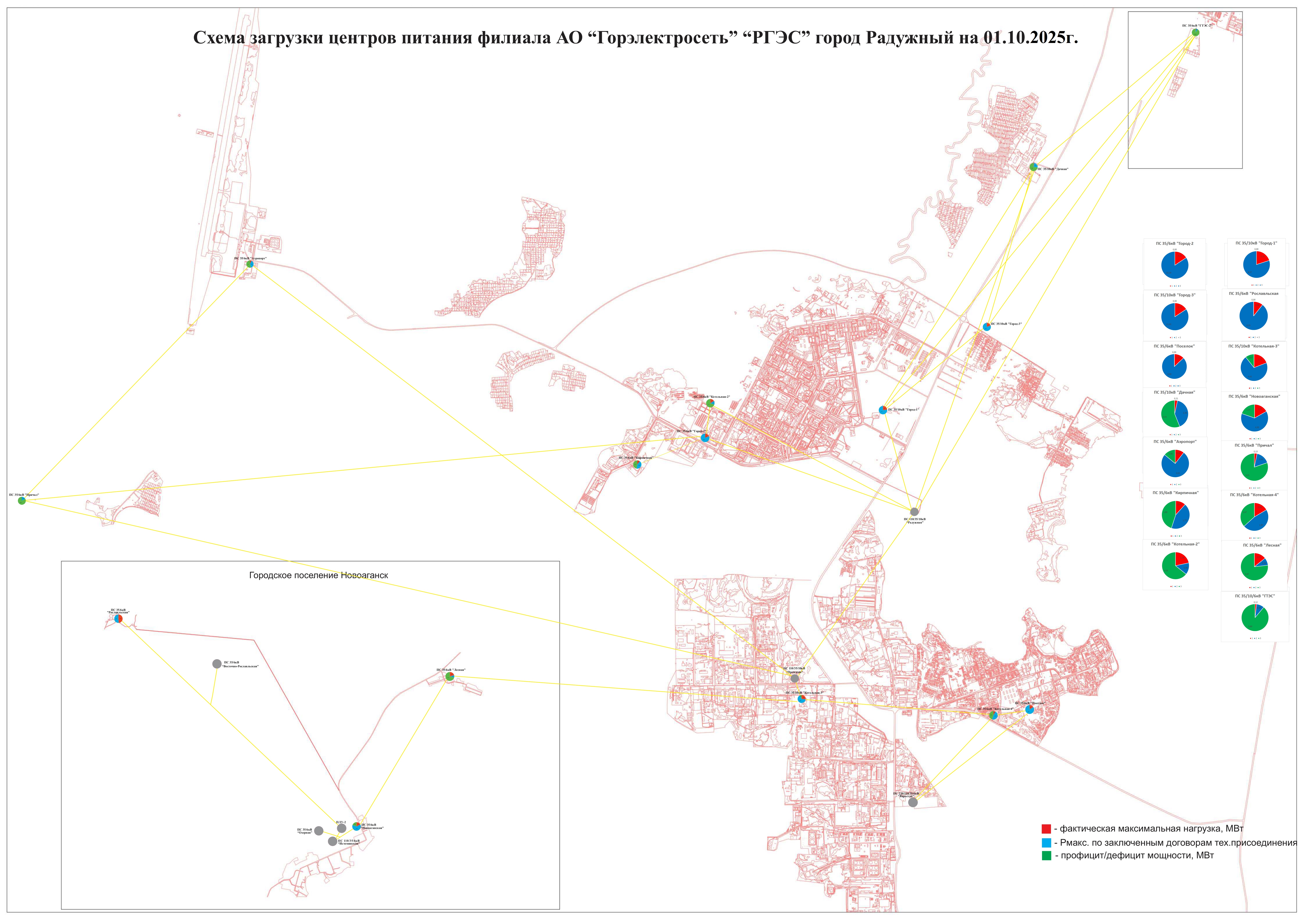 Карта-схема размещения и загрузки центров питания ПС-35кВ, РПП/РПЖ-6(10)кВ АО «Горэлектросеть».